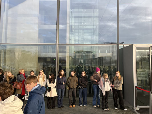 Vom 20.11. bis zum 24.11.2025 haben die Klassenfahrten des Einführungsjahrgangs nach Berlin stattgefunden. Auf dem Programm standen für alle Klassen ein Besuch des Bundestages mit einer Plenarsitzung und anschließender Besichtigung der Kuppel sowie eine Führung durch das ehemalige Stasi-Gefängnis Hohenschönhausen. Vier Klassen hatten zusätzlich entweder ein Gespräch mit dem Bundestagsabgeordneten Stefan Seidler (SSW) oder mit der Bundestagsabgeordneten Mayra Vriesema (Bündes 90 / Die Grünen). Dabei hatten die Schülerinnen und Schüler die Gelegenheit, Fragen direkt an die Abgeordneten zu stellen.