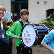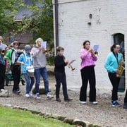 „La Banda Viktoria“ hat am 9. Oktober die musikalische Begleitung zur Eröffnung der Ausstellung „Stadt, Land, Vernetzung“ auf dem Wittkielhof bei Kappeln geliefert. Mit Trompeten, Posaunen, Saxophon, Bass und Schlagzeug sind wir im Gänsemarsch über den Hof spaziert und haben dabei bekannte Popsongs wie „Party Rock Anthem“, „Jerusalema“ und „Happy“ intoniert. Sowohl die Band als auch die Gäste hatten ihre Freude daran!