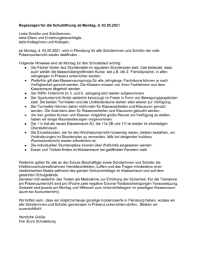 Die Schulleitung hat einen Rahmenplan für den Unterricht ab Montag (03.05.2021) zusammengestellt. Der Rahmenplan kann hier heruntergeladen werden.