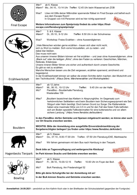 Die Veranstaltungen finden klassenweise am Dienstag- oder Mittwochnachmittag entsprechend der erfolgten Einladung statt.